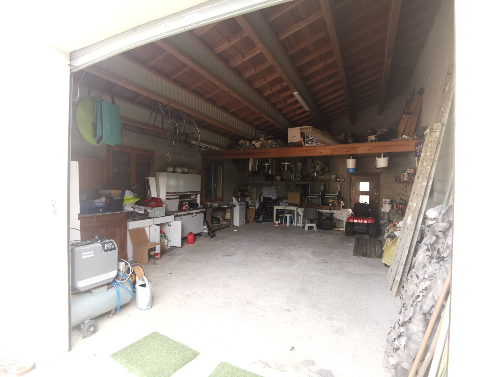 A l'extérieur un grand jardin, un parking gravillonné et un grand garage indépendant de 50m² pouvant être aménagé ou servir d'entrepôt de stockage.